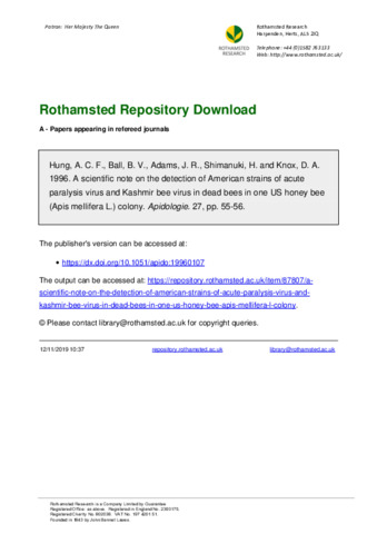 Hung, A. C. F., Ball, B. V., Adams, J. R., Shimanuki, H. and Knox, D. A.