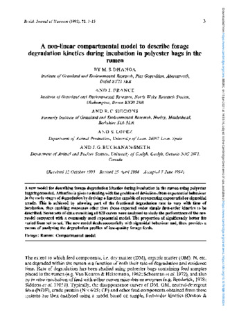 A non-linear compartmental model to describe forage degradation kinetics during incubation in polyester bags in the rumen