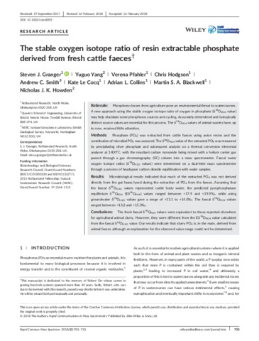 The stable oxygen isotope ratio of resin extractable phosphate derived from fresh cattle faeces