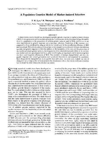 A deterministic two-loci model was developed to predict genetic response to marker-assisted selection (MAS) in one generation and in multiple generations. Formulas were derived to relate linkage disequilibrium in a population to the proportion of additive genetic variance used by MAS, and in turn to an extra improvement in genetic response over phenotypic selection. Predictions of the response were compared to those predicted by using an infinite-loci model and the factors affecting efficiency of MAS were examined. Theoretical analyses of the present study revealed the nonlinearity between the selection intensity and genetic response in MAS. In addition to the heritability of the trait and the proportion of the marker-associated genetic variance, the frequencies of the selectively favorable alleles at the two loci, one marker and one quantitative trait locus, were found to play an important role in determining both the short- and long-term efficiencies of MAS. The evolution of linkage disequilibrium and thus the genetic response over several generations were predicted theoretically and examined by simulation. MAS dissipated the disequilibrium more quickly than drift alone. In some cases studied, the rate of dissipation was as large as that to be expected in the circumstance where the true recombination fraction was increased by three times and selection was absent.