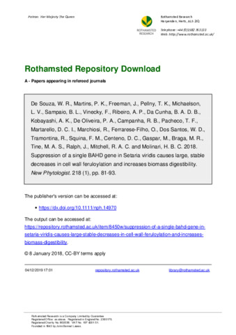 | Additional information | We acknowledge funding from grants FAPESP (2016/07926-4) to R.T., Coordination for the Improvement of Higher Education Personnel (CAPES-Embrapa)and Embrapa Macro program SEG (02.12.01.008.00.00) to H.B.C.M. and BB/K013335/1, BBSRC-GCRF-IAA/RIA-6 and BB/K007599/1 from UK Biotechnology and Biosciences Research Council to R.A.C.M., and the Great Lakes Bioenergy Research Center (DOE BER Office of Science DE-FC0207ER64494) to J. R. |
