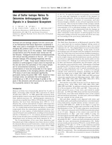 Use of sulfur isotope ratios to determine anthropogenic sulfur signals in a grassland ecosystem.