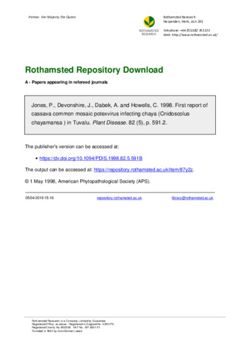 First report of cassava common mosaic potexvirus infecting chaya (Cnidoscolus chayamansa ) in Tuvalu