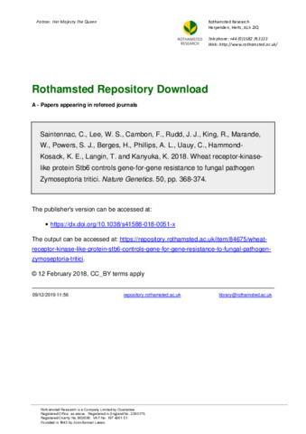 Wheat receptor-kinase-like protein Stb6 controls gene-for-gene resistance to fungal pathogen Zymoseptoria tritici