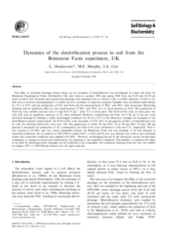 Dynamics of the denitrification process in soil from the Brimstone Farm experiment, UK